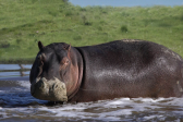 - Ippopotamo. È uno dei mammiferi più grossi che si trova al mondo al pari del rinoceronte. Ha un peso di quasi 2 tonnellate. Si caratterizza per un corpo enorme, zampe molto piccole e una gigantesca mandibola in grado di spalancarla fino a 150 gradi. Durante il giorno trascorre la maggior parte del tempo in acqua per idratare la pelle. È un’animale molto socievole e vive in gruppi. Nonostante la sua mole può raggiungere 40 km all’ora di velocità.