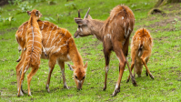 - Antilope Sitatunga. Si caratterizza per le lunghe corna a spirale. Vive nelle zone paludose dell’Africa Centrale e si nutre di piante vegetali e piante acquatiche.