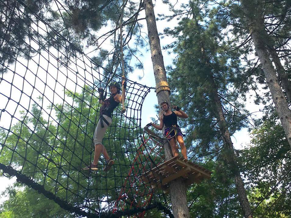 - Percorsi di pratica. Percorso per prendere confidenza con i moschettoni e i passaggi dei percorsi acrobatici: ponti a rete, passarelle, cavi e teleferiche.