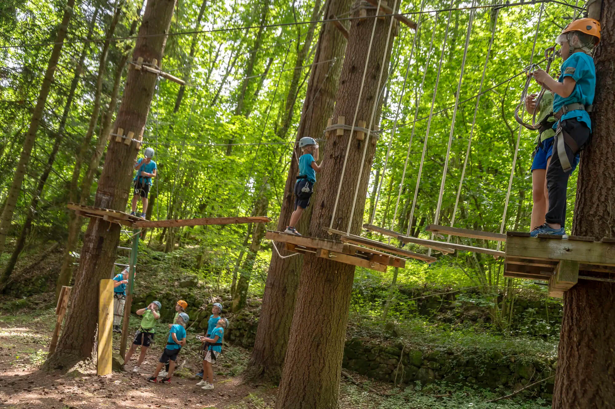 La sicurezza è garantita da standard elevati e dalla presenza di istruttori qualificati. L’accesso ai percorsi è regolato da turni per evitare affollamenti e garantire a tutti un’esperienza serena. I bambini sotto una certa età/altezza devono essere sempre supervisionati da un adulto (che spesso deve salire con loro sui percorsi intermedi).