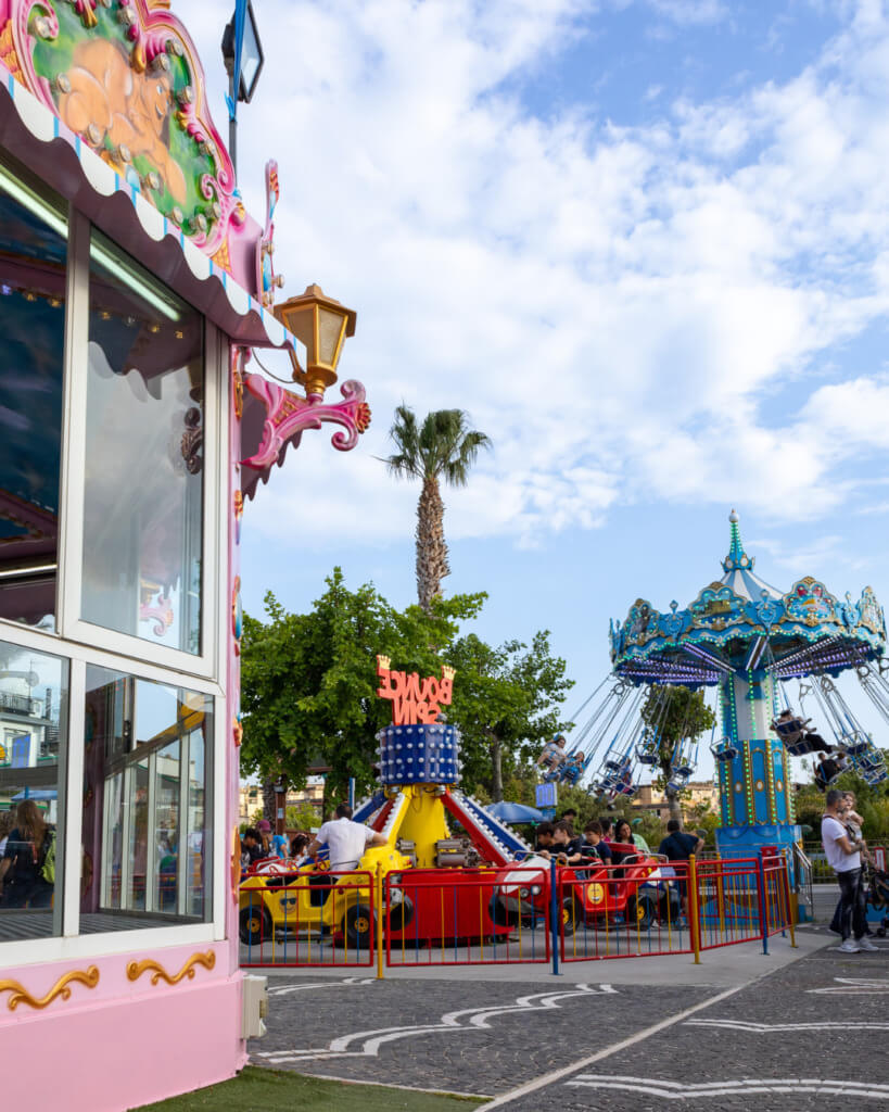 Per i più piccini, Vesuviuslandia è un regno incantato. Le attrazioni sono studiate per divertire in totale sicurezza. Il Carosello con i suoi cavalli colorati è un classico intramontabile che fa sognare ad occhi aperti, mentre la Pesca al Cigno è perfetta per sfidare mamma e papà e vincere un premio. Non perdete il Samba Balloon, dove coloratissime mongolfiere vi faranno “volare” dolcemente, e i Trampolini Elastici per saltare fino a toccare il cielo.